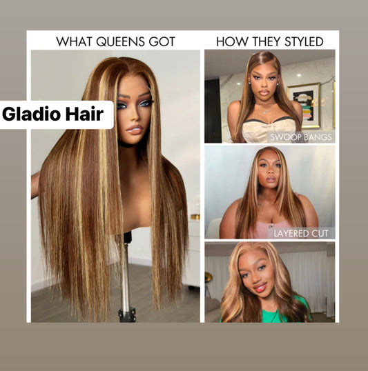 STRAIGHT BLONDE HIGHLIGHT SILKY GLUELESS CLOSURE WIG 5X5 HD LACE